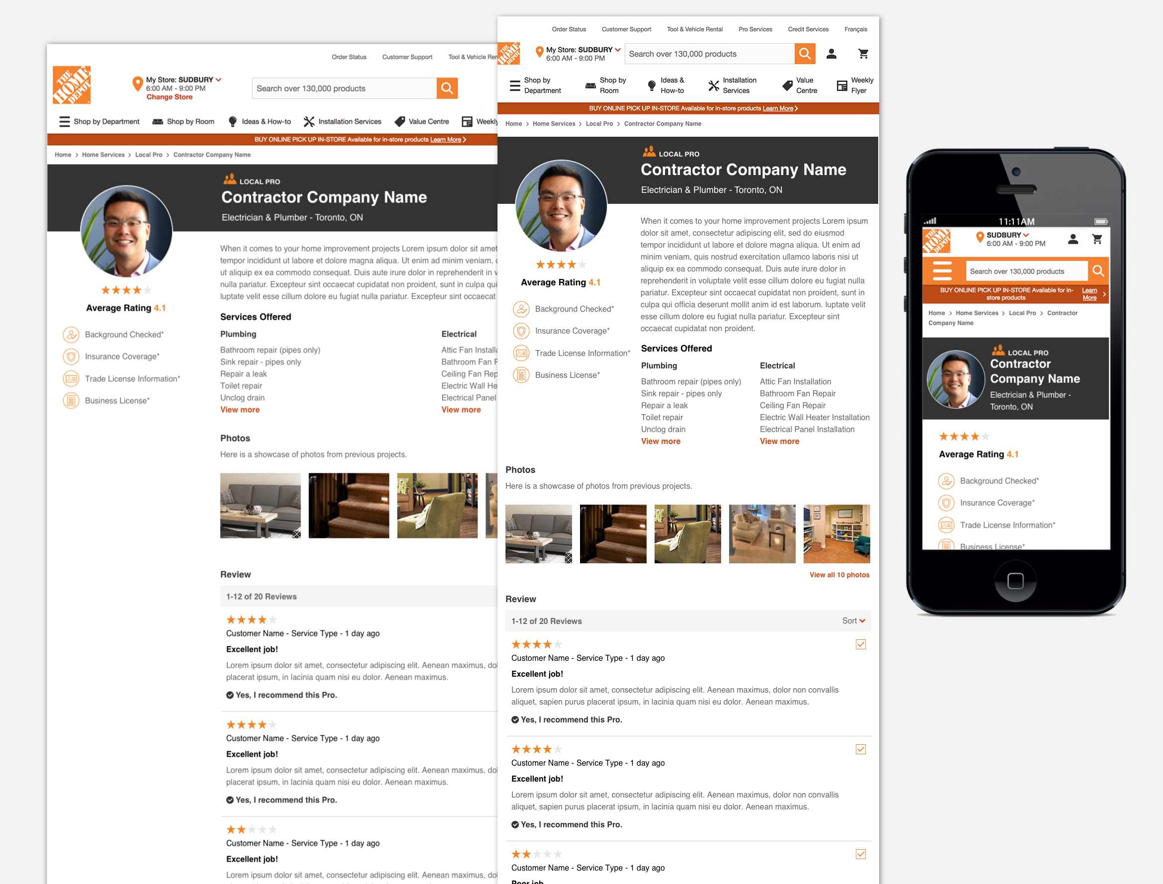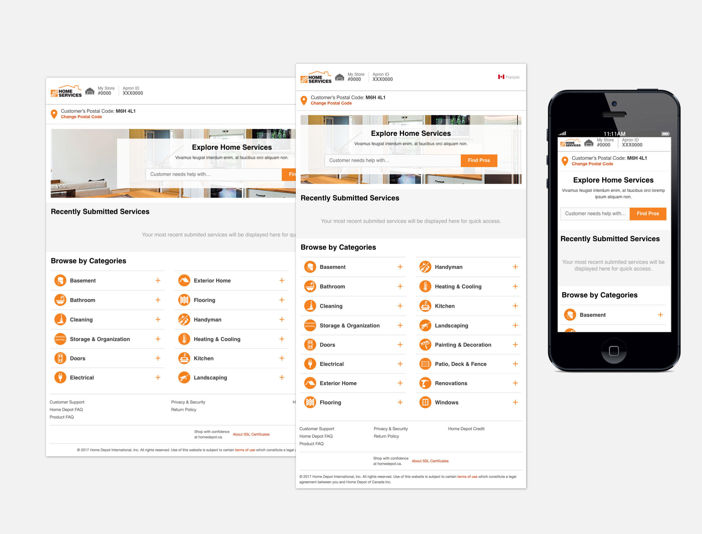 As a UI Designer, I was responsible for designing and creating high fidelity mockups and visual graphic assets of the new UI Design. All UI design has to adhere The Home Depot Canada/homedepot.ca design standards by following the digital style guide for all elements, such as buttons, fonts, forms, tables, colors, icons, navigation and etc.