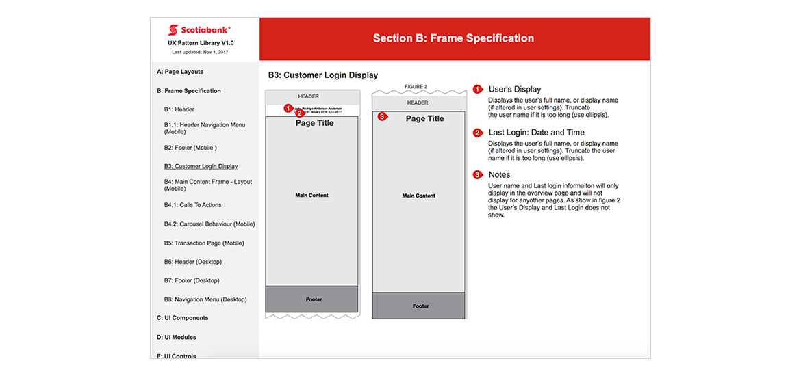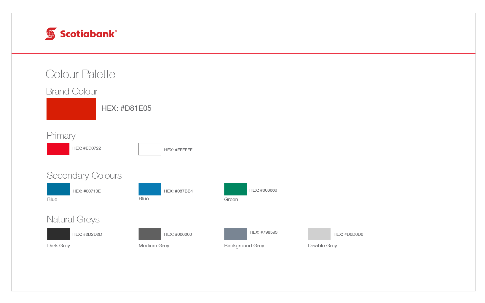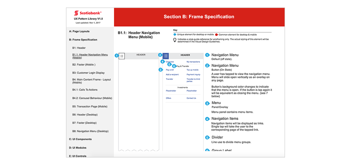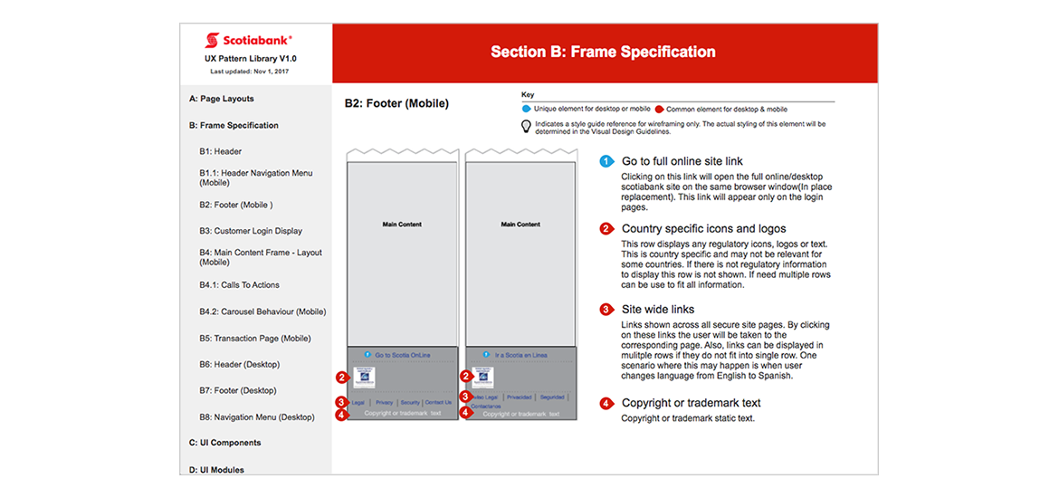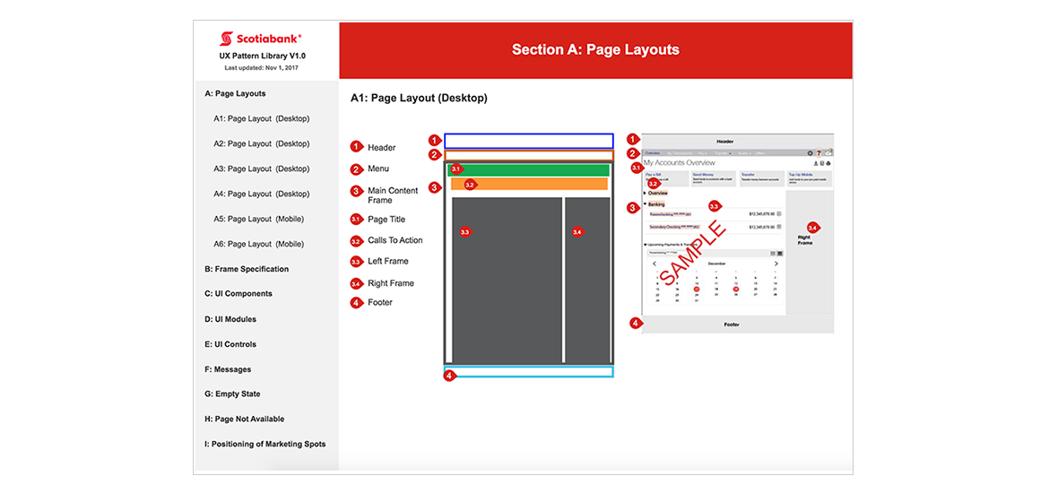 As a result, we have successfully completed the whole interactive online UI guide, in which consist of 93 pages within 2 weeks of time. This website is now hosted in Scotiabank's internal website and the Axure RP template that I have created will be uterilized to help digitizing other UI style guide as well.