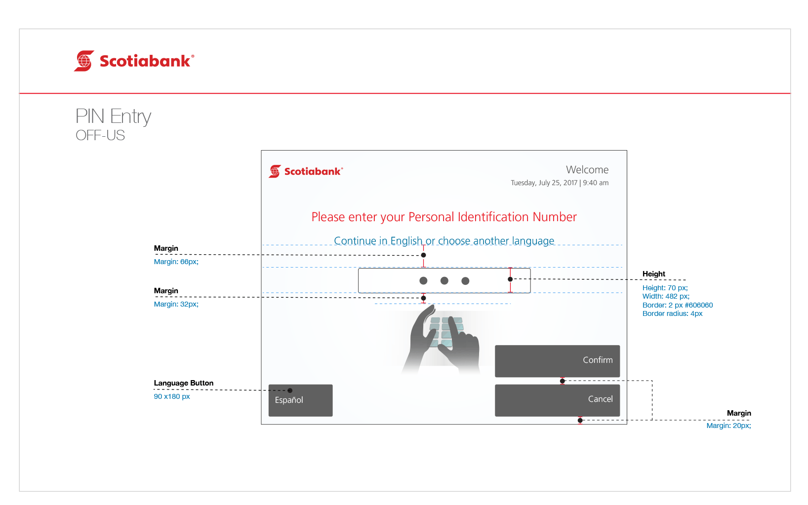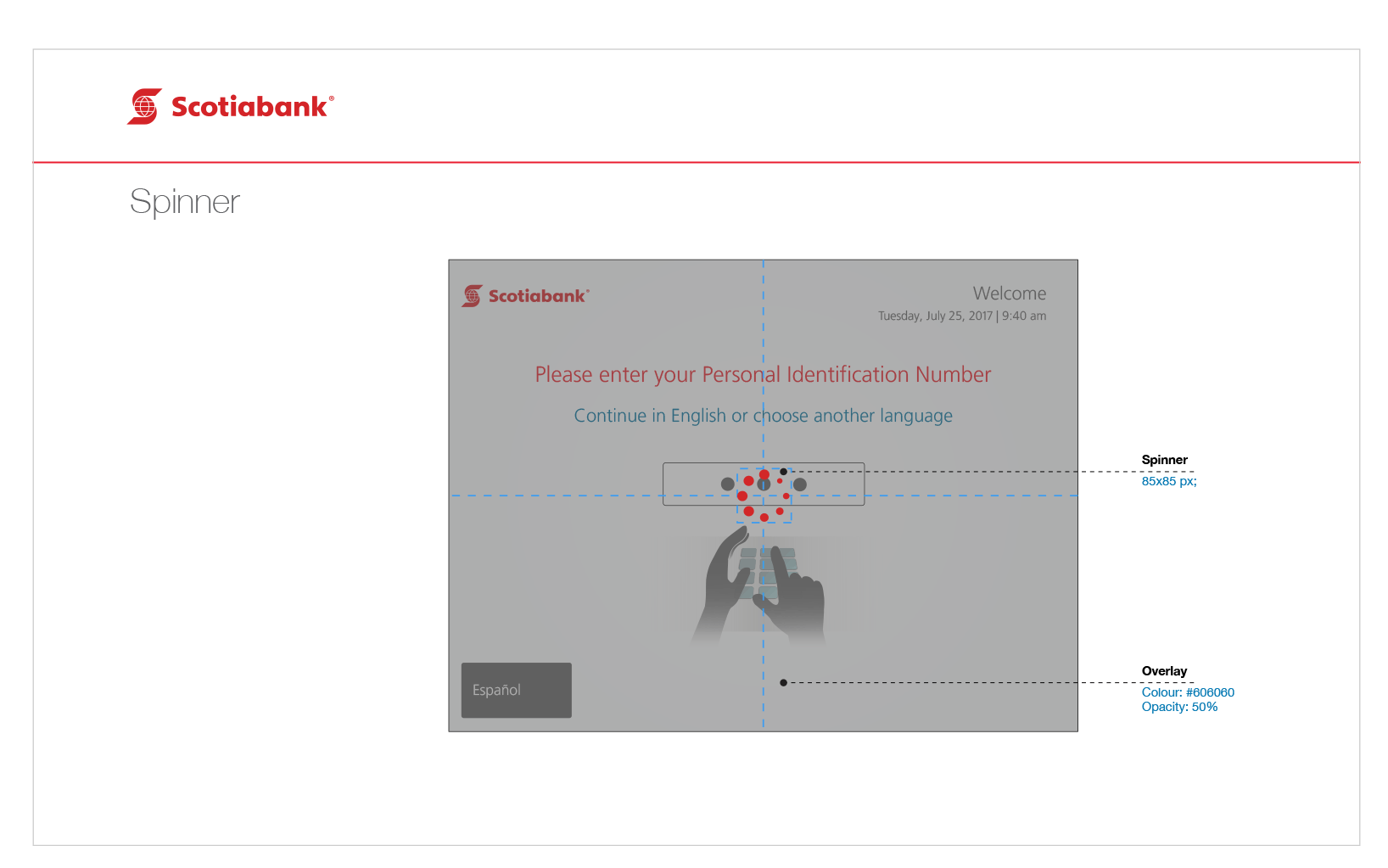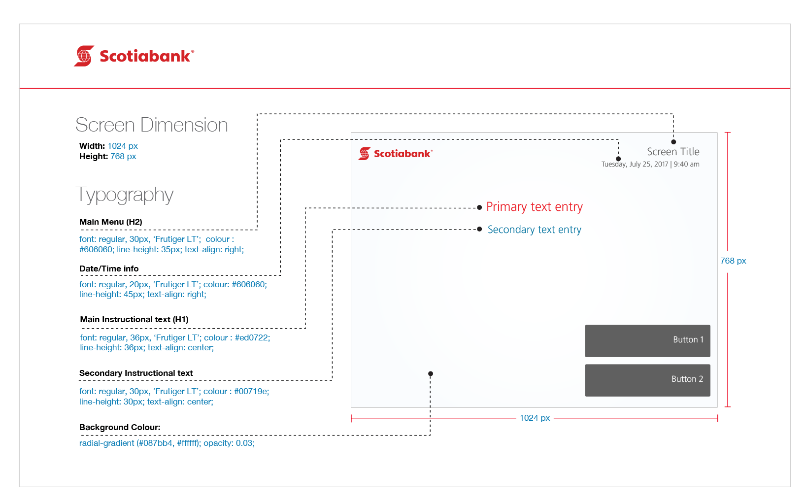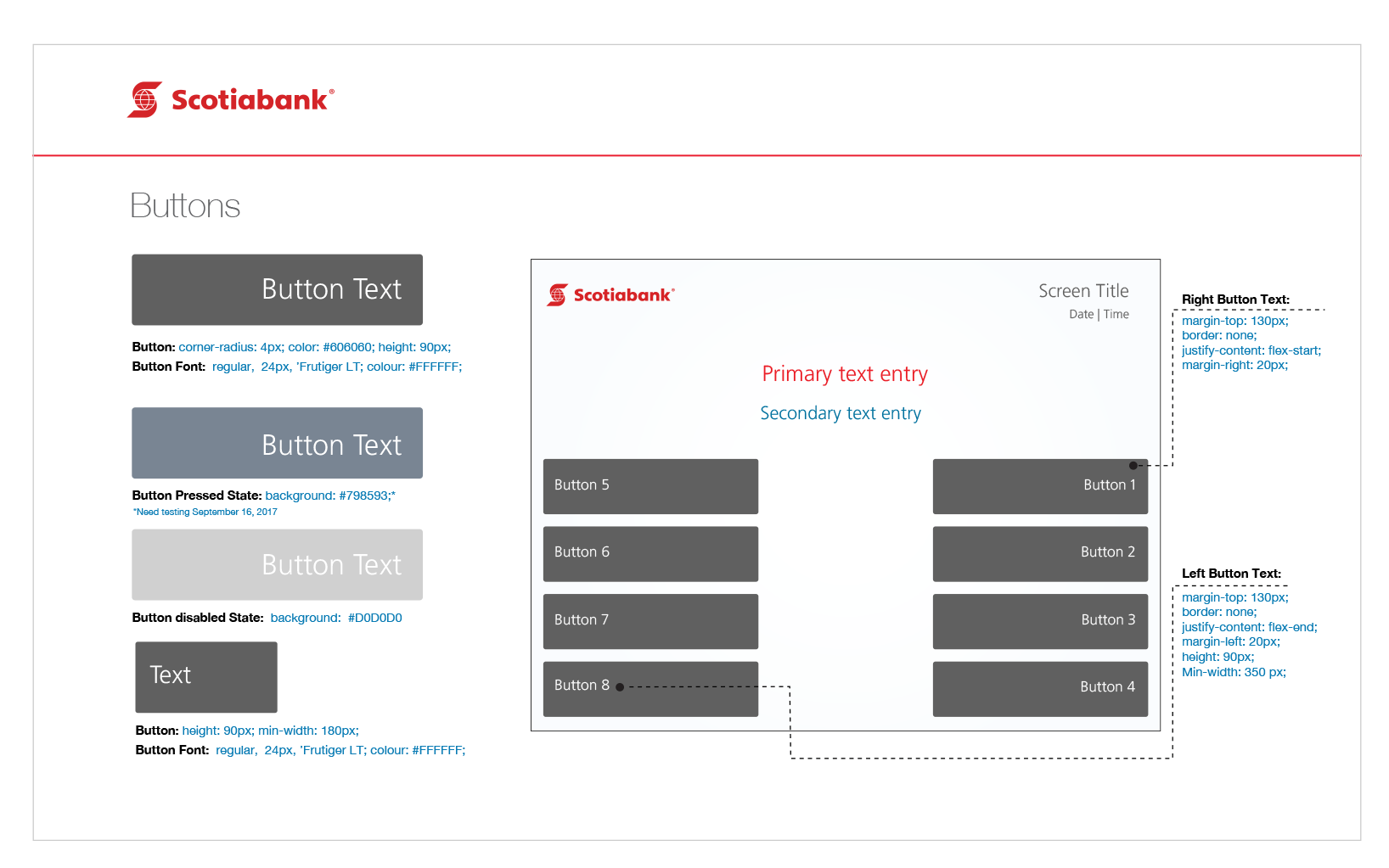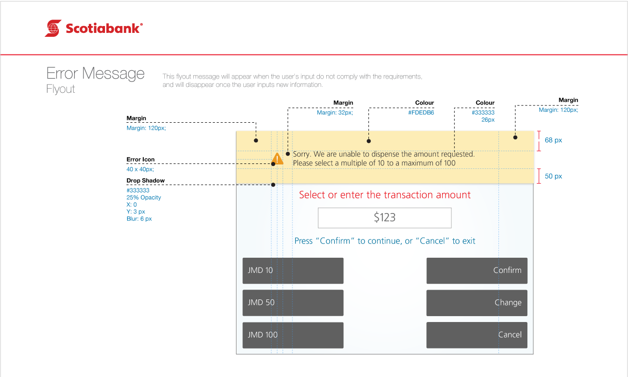 Featuring on this page are 8 out of 34 pages of the visual specification guide that we have put together based on our new UI visual design. It serves as a good tool for development team to implement our new design to the actual web based ATM/ABM application that will be running in the Caribbean countries.