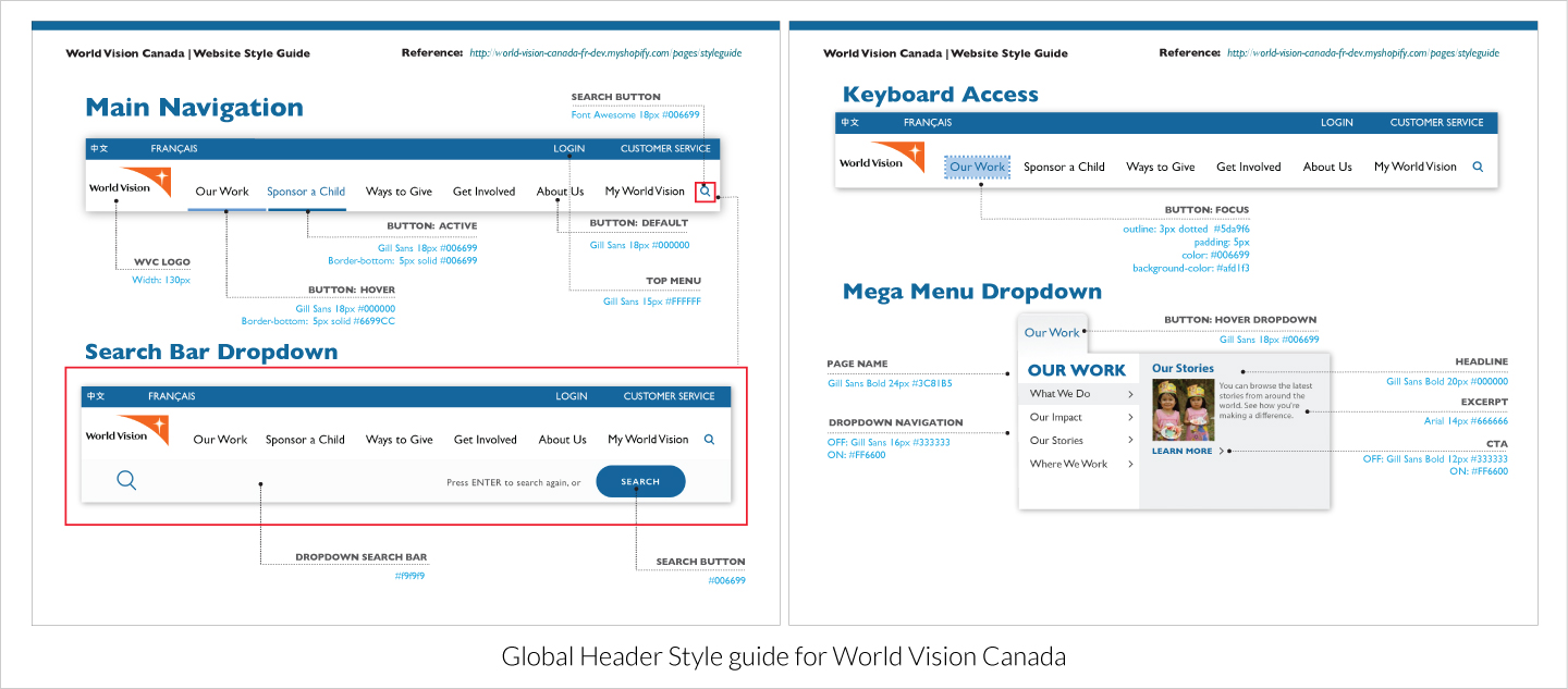 This is the style guide that I created to unify the style of various microsites in the organization. I have also specified some additional CSS properties such as button focus state to help improving the accessibility of the websites.